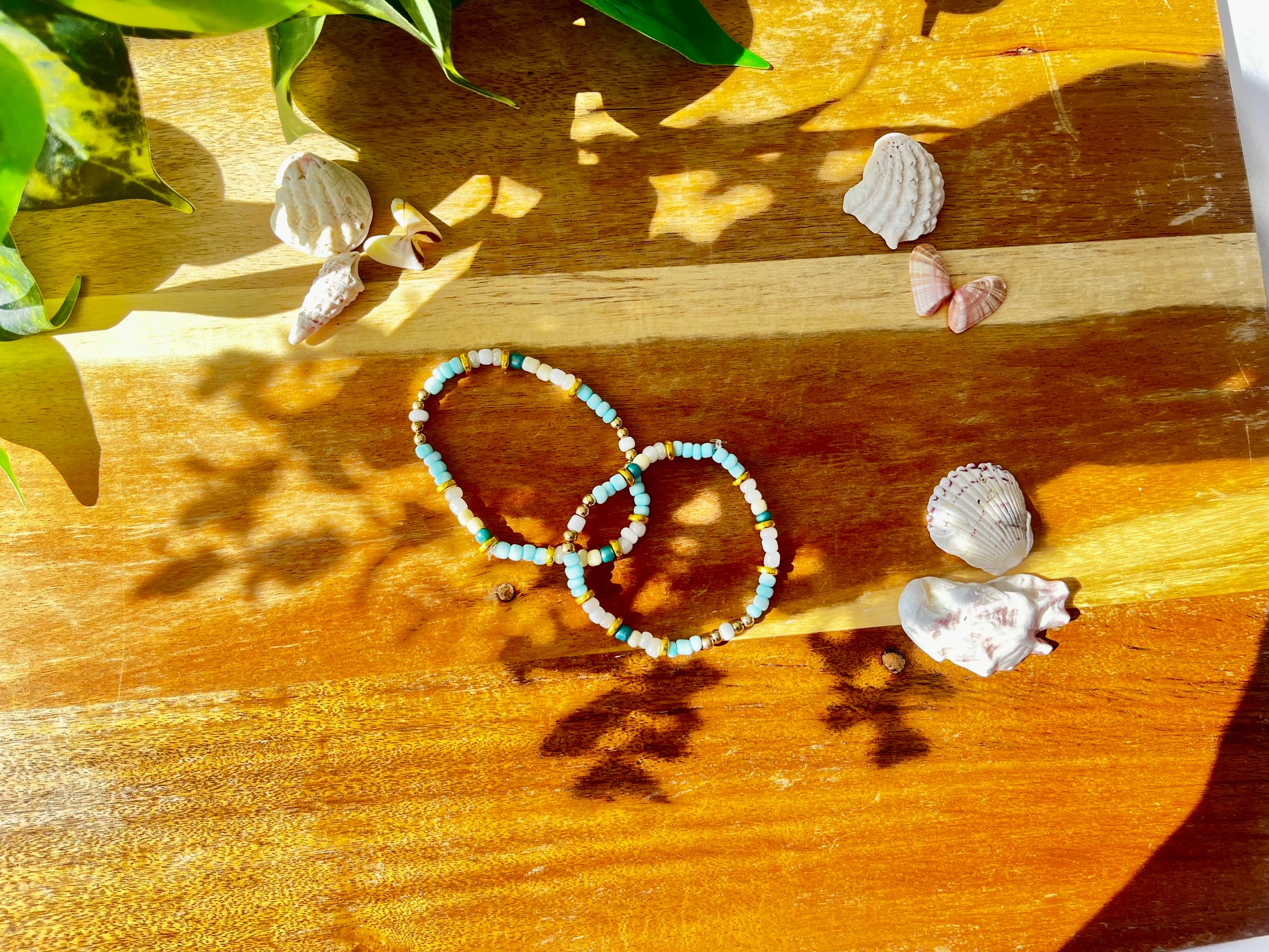 The Glimmering Tide Bracelet embodies the sparkling allure of the ocean's waves under the sun. Its design features shimmering beads that catch the light with every movement, mirroring the glistening surface of the sea. The soft, flowing pattern evokes the gentle ebb and flow of the tide, offering a sense of calm and tranquility. Perfect for adding a touch of elegance to any outfit, the glimmering tide bracelet is a beautiful reminder of the ocean's timeless beauty and serenity